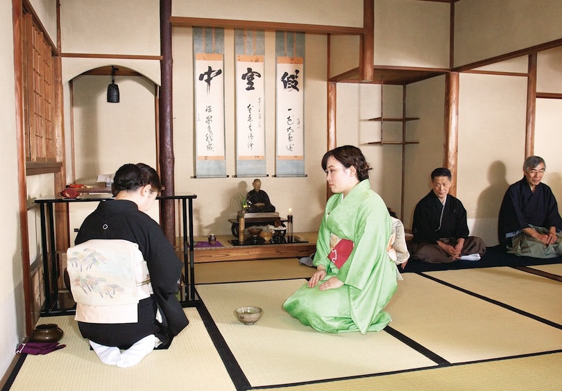 一円庵 床 伝来如心斎筆「宗雪」安名書 香炉 青磁 竜泉窯 堆朱盆に 教 場 床 俵屋宗達 白鷺絵 脇 備前 蕪壺 書院 琉球青貝双龍盆 棚 大黒天 平櫛田中作 蓮華庵 床 烏丸光廣卿 消息 嵐山紅葉云々 花入 胡銅 鶴首 浄雄作 花 丸葉万作 白玉椿 香合 織部 炉釜 阿弥陀堂 琳光院 不白在銘 水指 高取 一重口 薄茶器 一閑棗 八世一元斎 在判 菊桐蒔絵 喜三郎作 茶碗 乾山 松画讃 替 九世名元庵作 赤 祝字 蓮鶴作 志野 暦手 茶杓 十世名心庵作 銘 新生 御茶 星の昔 星野製茶園 御菓子 寿煎餅 千代結 京亀屋伊織