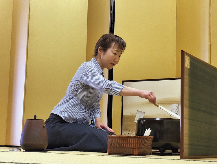 その後、体操で身体と心をリフレッシュさせてから、作成した風炉の灰で炭手前を行いました。美しく作った灰を崩してはならないということに心を奪われ、肝心の釜の湯が不足しておりました。「お稽古がそのまま実践に現れる」との宗匠のお言葉に、お稽古での「本気で取り組むこと」の不足をご指摘いただいた思いでした。最後に、随行の方の左利きのお点前を初めて拝見させていただきました。このように、多くを学べた研究会でしたが、溌溂とされた宗匠にお会いできたことを最も嬉しく感じました。今後は「本気で取り組む」を忘れずに、謙虚に学んでいきたいと思います。
