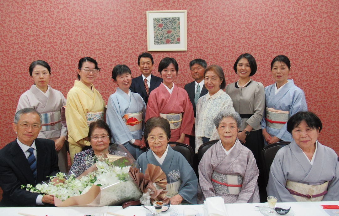 この日、生徒一人ひとりが先生のお耳元で祝福の言葉をお贈りしましたが、みな、長寿を寿ぐだけでなく、先生への尽きぬ感謝の想いが込められていたことが印象的でした。先生のご指導のもと茶道を学ぶ幸運に恵まれた慶びを、改めて噛みしめる一日となりました。