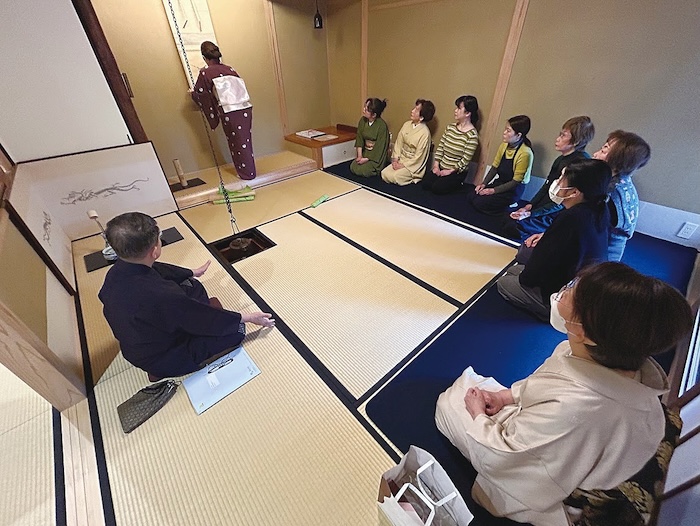 神戸教場では、三月十七日に名心宗匠にお越しいただき、研究会が開催されました。前半は小習と体操、後半は「花月」のご指導をいただきました。普段のお稽古では先生方のご準備により予め整えられた茶室に入ることが多く、準備段階である小習については、あまり知識がありませんでした。