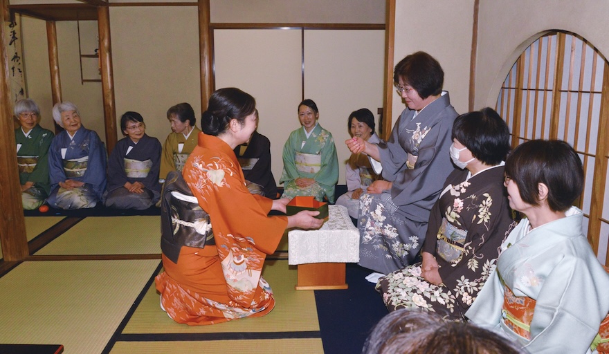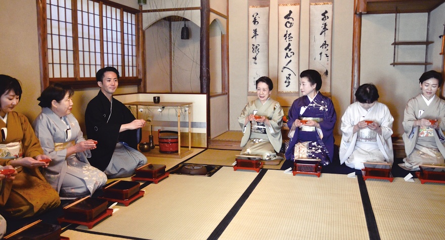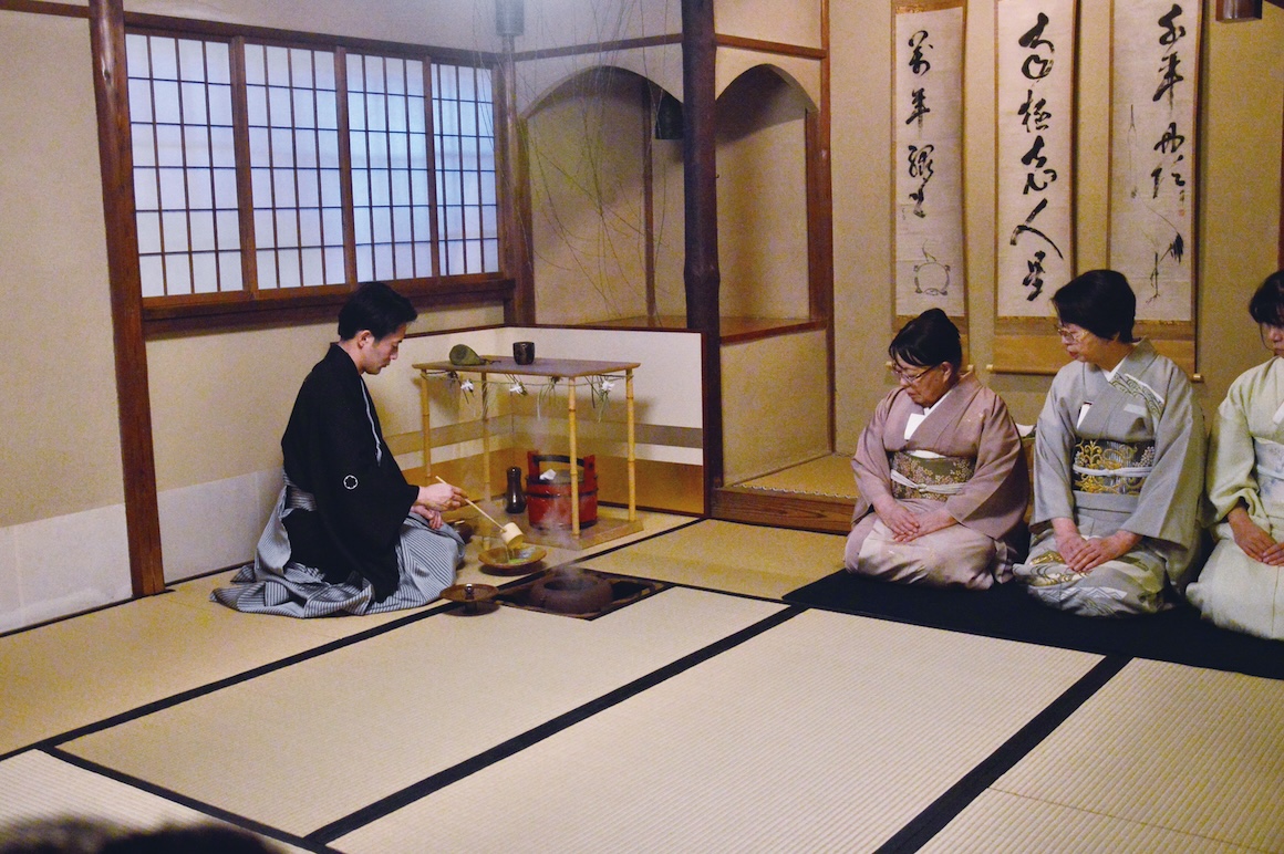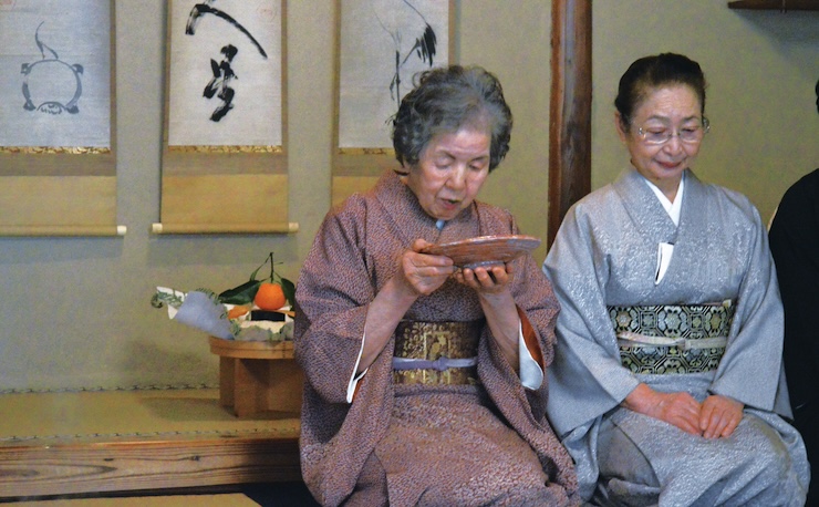 ■花月の間 床 不白筆 三幅対 南極老人星 千年丹頂鶴 万年緑毛亀 前に丸三宝飾り 花入 青竹 掛筒 花 柳 椿紅白各種 脇床 嶋台茶碗 不白作 釜 広口縦筋 長野烈作 炉縁 長熨斗蒔絵 棚 竹台子 水指 江岑好 朱手桶 皆具 不白好 山口浄雄作 茶入 大海 備前 「凡」 茶器 梅蒔絵 茶碗 金銀嶋台 牧庵作 茶杓 不白作 「龍窟」米寿 御茶 「雲鶴」 丸久小山園詰 菓子 えくぼ饅頭 㐂久月製 器 朱 高坏一双 脇床 原叟覚々斎 初むかし 今日たて初むる初子かな